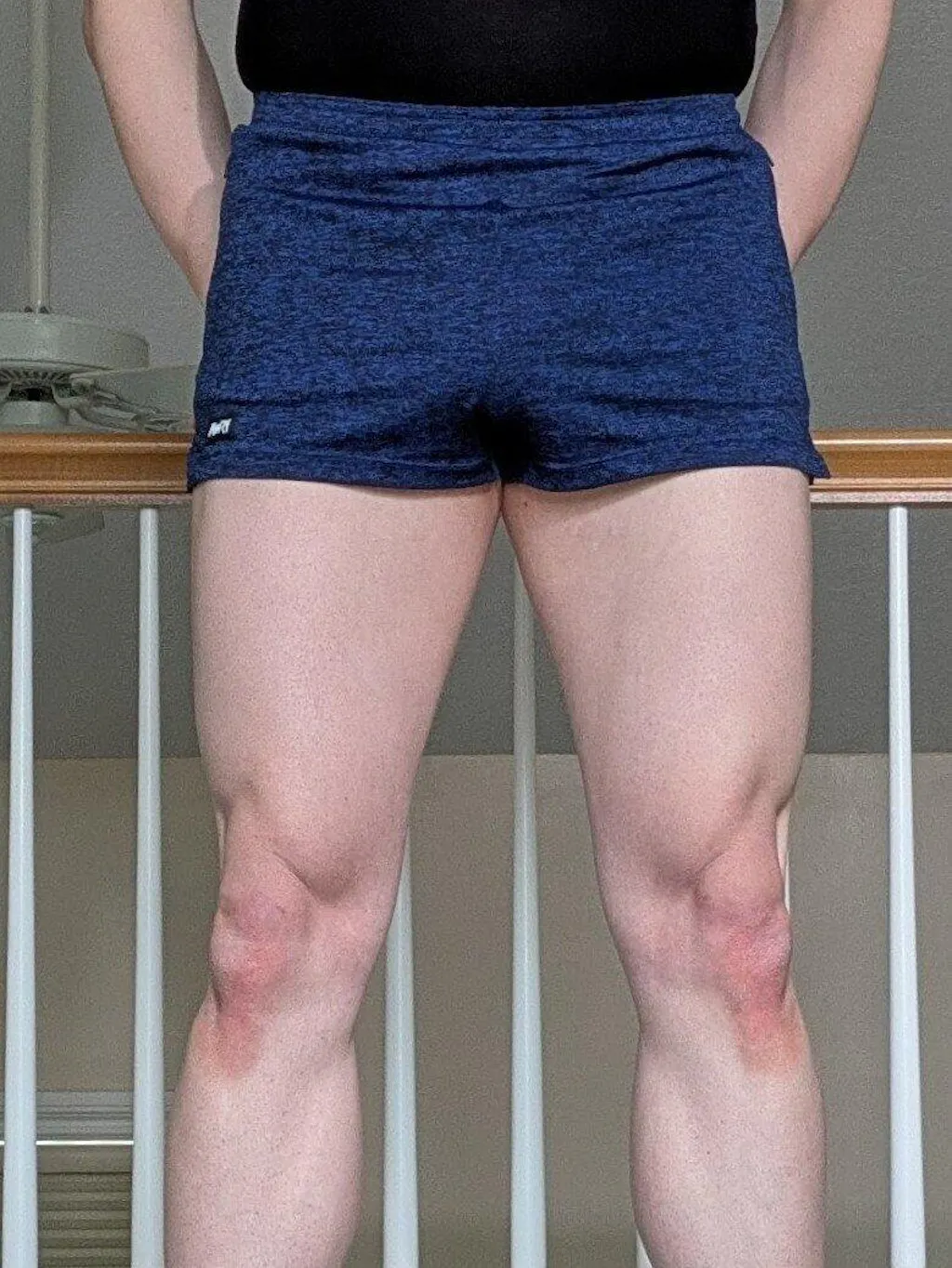 While I love to see a 2" inseam short available, I feel that it does limit the practicality or the scenarios when you can safely (maybe I'm thinking of the wrong audience 😅) wear these. Other reviewers have mentioned their interest in wearing these in athletic settings, which I'd like, too, but even after sizing down to medium, the cuff of the legs is a bit too loose (maybe?) for some situations like deep lunges (pictured), splits, hand-to-toe-pose, etc. You can't really fault the design or quality of the garment, though: this is kind of inherent to 2" inseams in my experience with a couple other brands. I'd just temper your expectations about how you'll use these and test them.